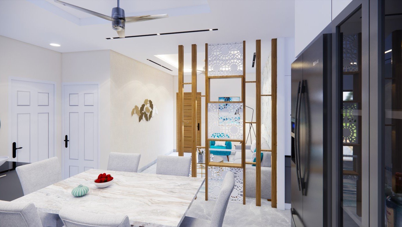 This contemporary dining space is crafted to offer a refined yet comfortable environment for shared moments and everyday dining. A harmonious blend of modern finishes, soft color palettes, and thoughtful lighting creates a warm and inviting atmosphere. The layout is designed to ensure ease of movement while maintaining an elegant visual flow. Every element is carefully chosen to balance aesthetics with practicality, resulting in a dining area that feels stylish, welcoming, and timeless.